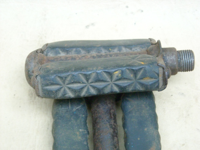 Pedal untuk sepeda anak -anak ukuran roda 22 , 20 , 18 ,16 , barang asli tua , buatan German , karet masih bagus tidak ada yg pecah , kondisi masih sangat layak pakai , tutup ada yg bolong dimakan usia tapi bisa di tambal las kuningan . |