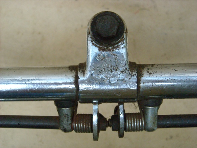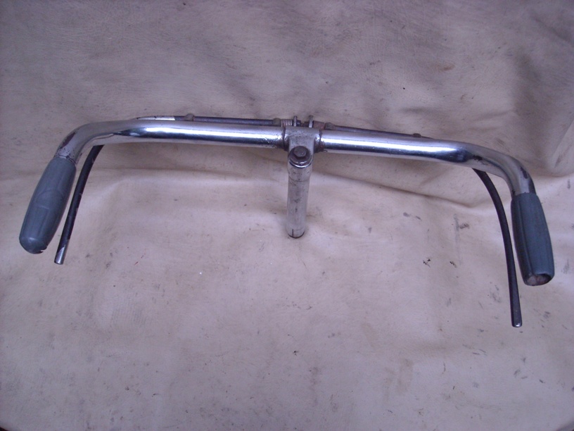 Stang original , simbol senapan dan tulisan BSA yg model ini ada pada kepala baut ancer tapi sudah tidak terlihat , namun stang ini asli buatan BSA , stang masih bagus hanya kroom bagian handle hampir seluruhnya sudah hilang , ciri khas keaslian stang BSA bisa diperhatikan pada holder handle rem yg bentuknya seperti kepala peluru dan bentuk ini hanya ada dan merupakan cici khas desain stang BSA tidak pada stang jenis sepeda lain , stang ini sangat cocok untuk semua sepeda BSA diatas tahun 1945 , seperti model sersan mayor maupun model lainnya sampai tahun 1960 an . |