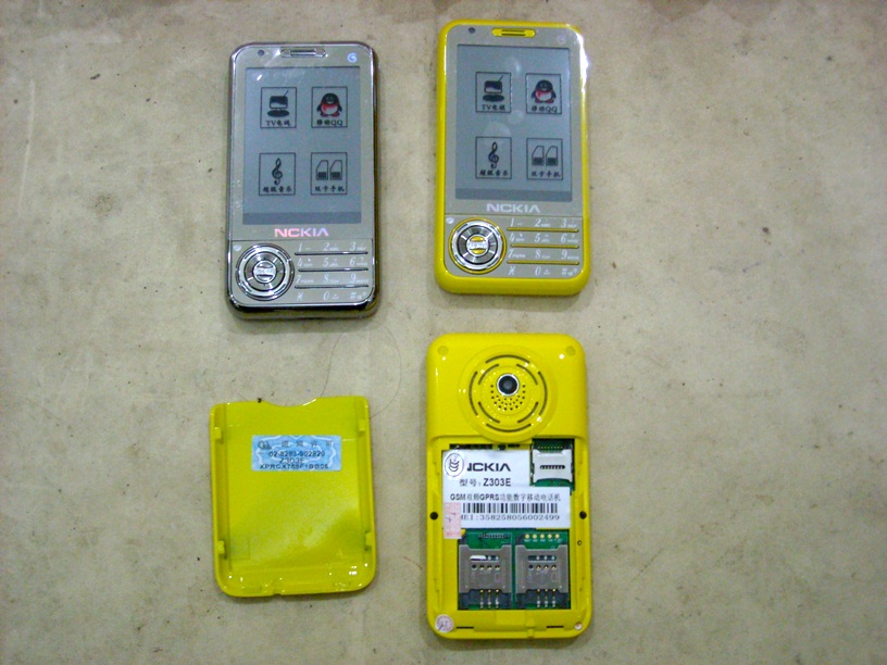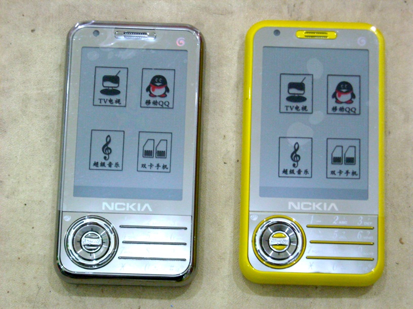 Handphone buatan China model touch screen sangat mirip dgn nokia 5320 maupun N98 , kondisi baru pilihan warna paling banyak kuning dan ada beberapa yg silver croom , body hp dari logam bukan plastik , total stock sekitar 200 pcs , dual sim card , camera , musik dll , barang hanya batangan saja . |