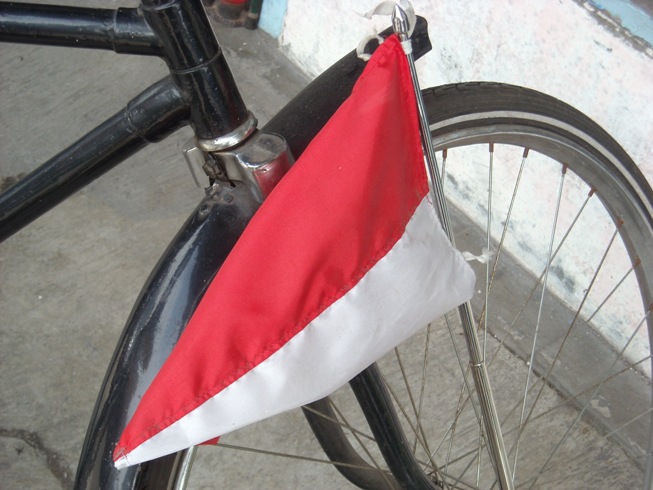 Salah satu asesoris tambahan untuk lelengkapan sepeda , sisa kebiasaan jaman perang dunia ke II , dimana Indonesia saat itu sedang dijajah jepang sampai clash I dan ke II tahun 1949 dilanjutkan sampai tahun 1955 pemilu pertama dst , umumnya sepeda-sepeda pada saat itu utk menghindari agar tidak diserang atau ditembak , di haruskan memakai bendera kecil untuk membedakan pemilik sepeda untuk yg belanda maka bendera kecilnya merah putih biru , Pribumi maka benderanya merah putih atau tentara jepang benderanya matahari terbit , tanpa itu bisa ditembak tanpa peringatan -dianggap sepeda gerilyawan atau mau menyerang . penempatan tiang bendera ini pada posisi di kanan di garpu depan dengan cara menempelkan pada baut ass roda depan . dijaman sekarang dipakai sebagai asesoris , benderanya bisa apa saja , termasuk bendera negara pembuat sepedanya atau bendera klub sepedanya dll . |